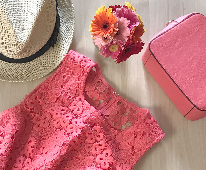 Wie das immer so ist, gerade wenn man nicht nicht vorhat irgendwas zu kaufen findet man bestimmt etwas. So ist es mir letzte Woche ergangen. Ich war mit einer Freundin zum Kaffee trinken verabredet. Auf dem Weg zum Treffpunkt erhielt ich eine Whatsapp von ihr, dass sie sich um etwa 15 Minuten verspäten würde, weil sie Verkehr steckt. Da ich keine Lust hatte 15 Minuten im Kaffee zu warten, entschloss ich mich noch kurz bei .Buttlers und Hallhuber reinzuschauen, die genau gegenüber liegen. Bei Buttlers kann ich mich normalerweise verlieren und stundenlang stöbern, heute aber war mir das Gewusel zu groß. Überall SALE, SALE, SALE, viele Menschen und ausschließlich Sommerdeko, wovon ich schon mehr als genug habe. Bei Hallhuber wollte ich eigentlich die neue neue Herbstmode begutachten. Allerdings ist mir ein Tisch mit Accessoires und Kleidung in der Farbe Flamingo sofort ins Auge gestochen. Die Farbe liebe ich, gerade wenn man etwas gebräunt ist. Und so kam es, dass ich gleich dreifach zugeschlagen habe.