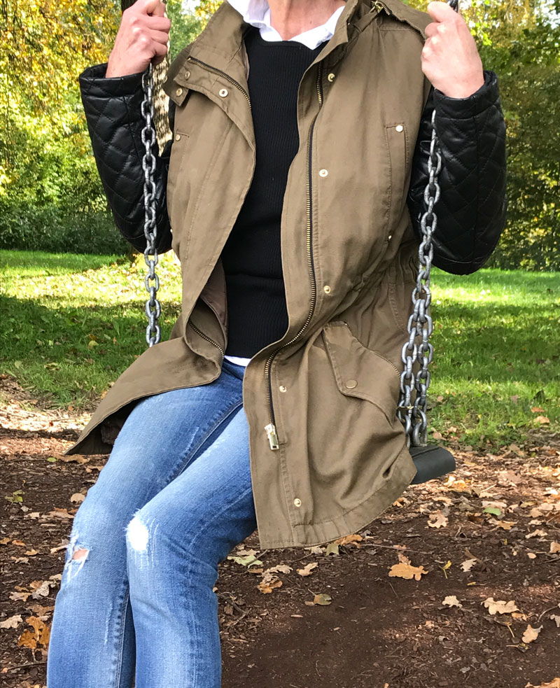 Stil und Ausstrahlung sind das was uns ausmacht, nicht der neue Pullover! Bleiben durfte wie gesagt diese Jacke, in die ich mich einfach verliebt habe. Ich bin sicher so ein Lieblingsteil hat jeder. Anziehen und wohlfühlen! Heute gehört meine ganze Aufmerksamkeit der wunderbaren Herbstlandschaft. Ausgestattet mit Iphone und Kamera freue ich mich über die schönen Bilder. Und manchmal darf man auch mit über 60 noch Kind sein und ein bisschen Spaß beim Schaukeln haben. Ich kann nicht beschreiben was das für einen unglaublichen Spaß gemacht hat.