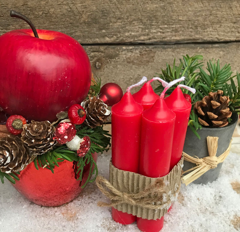 Rote Kerzen, rote Kugeln, rote Äpfel, rote Schleifen. Alles was rot ist passt jetzt hervorragend in die Adventszeit.