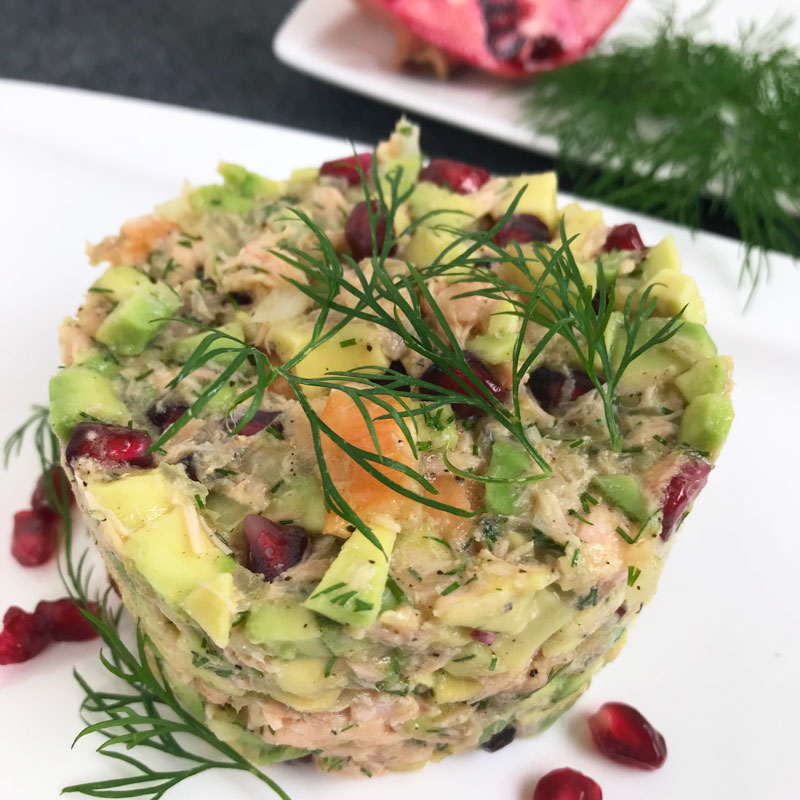 Oft ist man mit seinem Küchenlatein am Ende und wünscht sich etwas Anderes oder Neues auf dem Teller. Dieses kleine Köstlichkeit ist einfach und ruck-zuck zubereitet und eignet sich hervorragend als Vorspeise, gesunder Snack zum Abendbrot oder aber auch als Leckerei zum Brunch auf dem Frühstückstisch. Die Kombination Lachs und Avocado ist kulinarisch ein Hammer die Granatapfelkerne verleihen dem Gericht die ideale Frische.