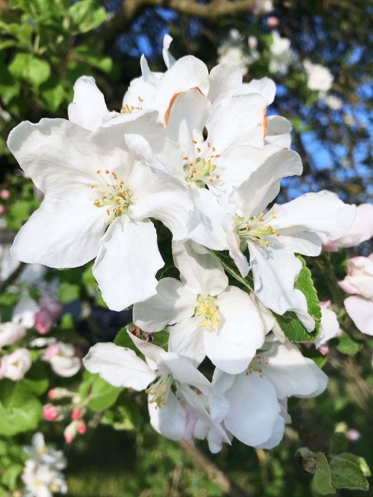 Bis dahin bewundere ich die herrlich blühenden Apfelbäume bei unserem Nachbarn im Garten!