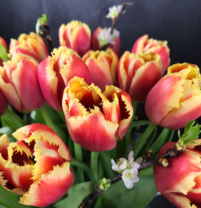 Wie auf meinem Blog unschwer zu erkennen ist habe ich mich diesen Frühling reichlich mit Tulpen beschenkt und viele Farben und Sorten vorgestellt. Mein absolutes Highlight war die Entdeckung der französischen Tulpe die ich hier vorgestellt habe. Auf die Frage einer Freundin welche Tulpen ich am Liebsten mag konnte ich trotzdem nicht antworten. Die Tulpen faszinieren mich in allen Farben. Ganz schlicht in weiß oder wie heute in der mehrfarbigen Variante mit gefransten Blüten.