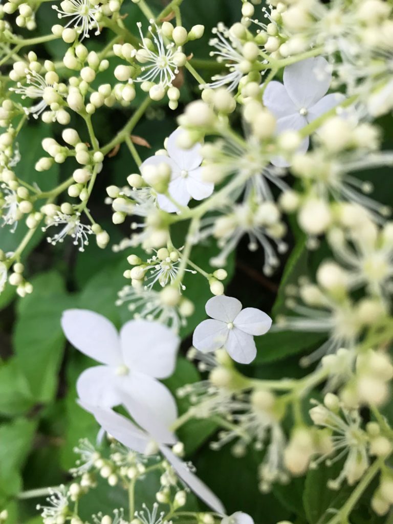 Gegossen werden Tellerhortensien mässig – aber regelmäßig, nur die Kübelpflanzen giesse ich im Hochsommer täglich. Umgetopft werden Hortensien in der Kübelhaltung am besten im Frühjahr, noch bevor sie ihren Austrieb bilden. Wichtig ist, dass das neue Pflanzgefäss ausreichend gross ist, um genug Platz für die Wurzel zu bieten. Im Winter bleibt der Kübel mit ausreichend Frostschutz, wie Jutesäcken und Vlies, an einem windgeschützten Platz draussen. Keinesfalls soll die Tellerhortensie im Herbst geschnitten werden, jedoch im Frühjahr kann unbesorgt zur Schere gegriffen werden, die allerdings scharf und sauber sein soll. Das feuchtwarme Klima lässt die Tellerhortensie im Moment regelrecht auswuchern, sodass ich womöglich noch jetzt nachschneiden muss. Hilft nix, schliesslich möchte ich ohne grosse Hindernisse das Haus betreten.
