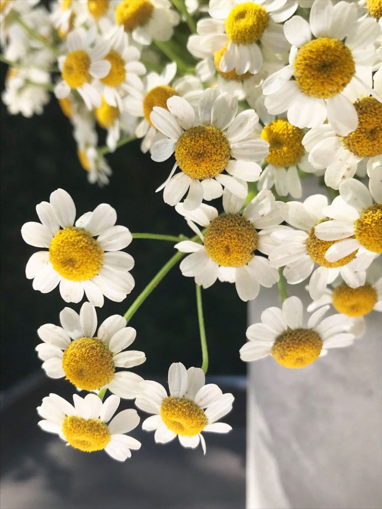 Die Kamille ist eine altbekannte Heilpflanze die als Beiwerk für sommerliche Blumensträusse sehr beliebt ist. Die zierliche, herrliche duftende Blume als Beiwerk zu nennen finde ich sehr schade, denn ein kleines Sträusschen alleine mit Kamillenblüten sieht auf dem Frühstückstisch sehr hübsch aus.