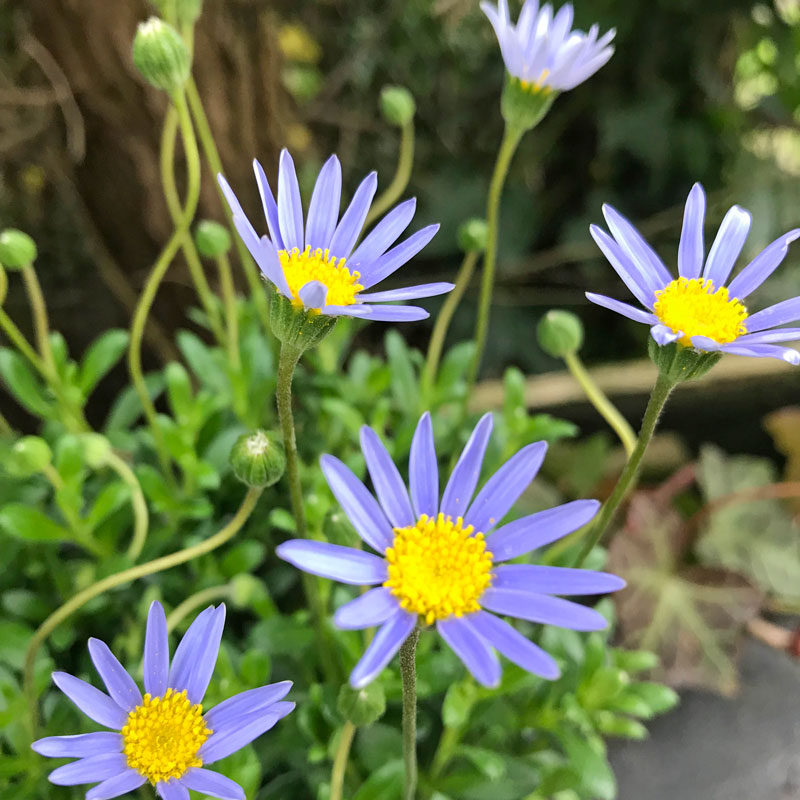 Das blaue Gänseblümchen Felicita habe ich im Supermarkt entdeckt und für die Terrassen in einen Kübel gepflanzt. Die Pflanze soll sehr pflegeleicht sein, jedoch ist regelmäßiges giessen besonders an sonnigen und warmen Tagen wie im Moment sehr wichtig.