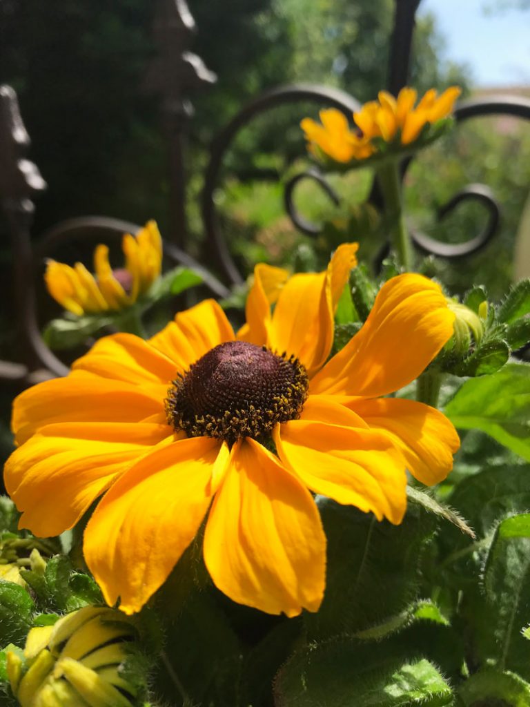 Diese Blüten mit dem schwarzen Knopf in der Mitte der Blüte erfreut auch Bienen, Schmetterlinge und andere Insekten. Auch im Pflanzkübel gedeiht sie prächtig, den sie erreicht gerade mal 40 cm – vorausgesetzt die Terrasse oder der Balkon sind sonnig. Rudbeckia gehört ebenso wie der Sonnenhut zur Familie der Korbblütengewächsen. Auch bereichert die Rudbeckia den Garten noch auf eine andere Weise, die für mich sehr wichtig ist, den die gefrässigen Schnecken machen einen grossen Bogen um die Pflanze.