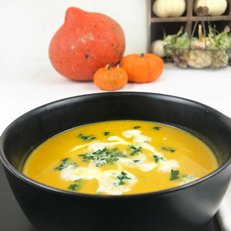 Den Kürbis waschen, entkernen und in kleine Stücke schneiden (die Schale kann beim Hokkaido mit gegessen werden) Zwiebel, Äpfel und Karotten schälen und in kleine Stücke schneiden. Die Zwiebel in der heissen Butter glasig werden lassen, die Kürbisstücke, Karotten und die Äpfel hinzugeben und andünsten. Den Ingwer hinzu und nach 2-3 Minuten mit Gemüsebrühe ablöschen und für ca. 20 Minuten köcheln bis das Gemüse weich ist. Die Suppe mit dem Stabmixer fein pürieren, mit Salz, Pfeffer und Muskat nach Geschmack würzen. Die Sahne hinzu und mit der gehackten Petersilie heiss servieren.