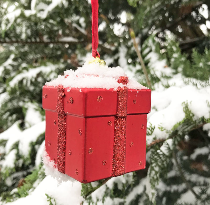 Das Kränzchen habe ich schon Ende November gebunden und nicht damit gerechnet, dass wir schon Schnee bekommen. Aber auch das rote Glaspäckchen, macht mit dem Schneehäubchen ein zauberhaftes Bild.