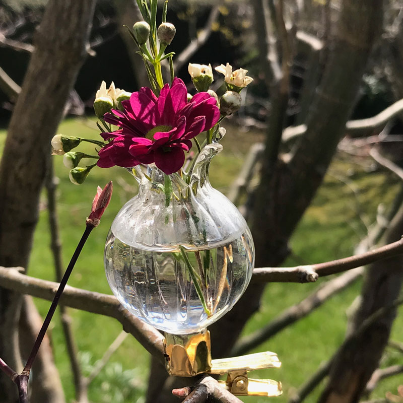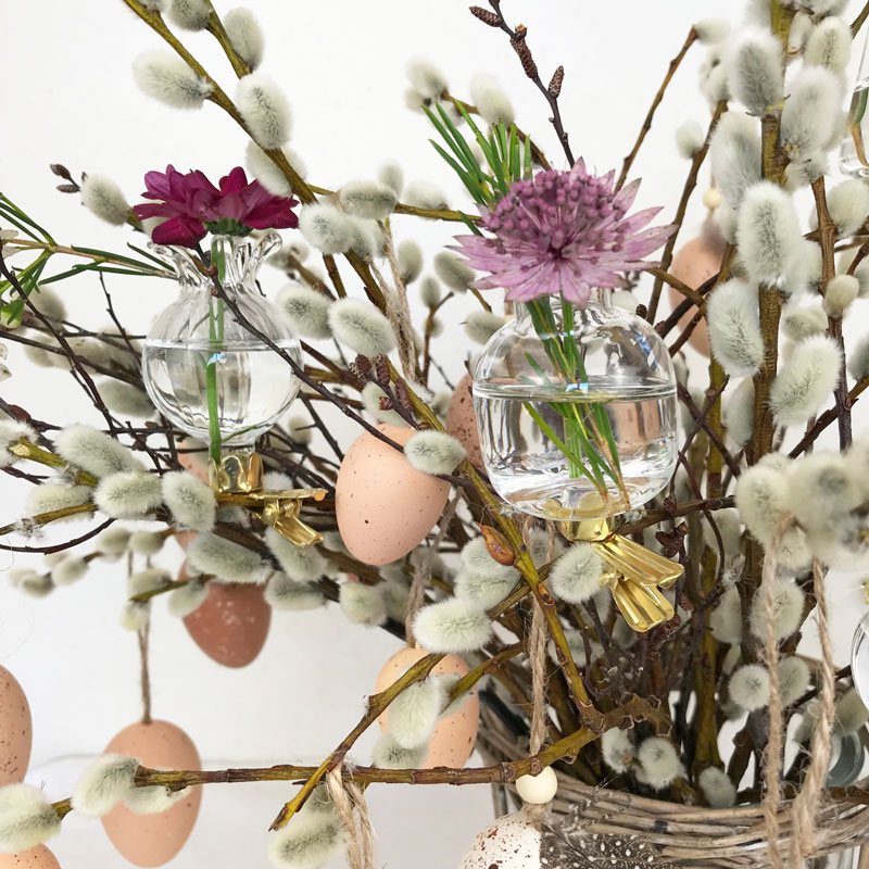 Eine tolle Idee habe ich bei Depot gefunden – ClipVasen. Was für eine schöne Idee, den diese filigranen Glasvasen können an Zweigen befestigt werden oder an einem Gestell, dass es auch bei Depot zu kaufen gibt. Mit diesen Mini Vasen kommen Santini, Gänseblümchen, Maiglöckchen oder Sterndolden besonders hübsch zur Geltung.