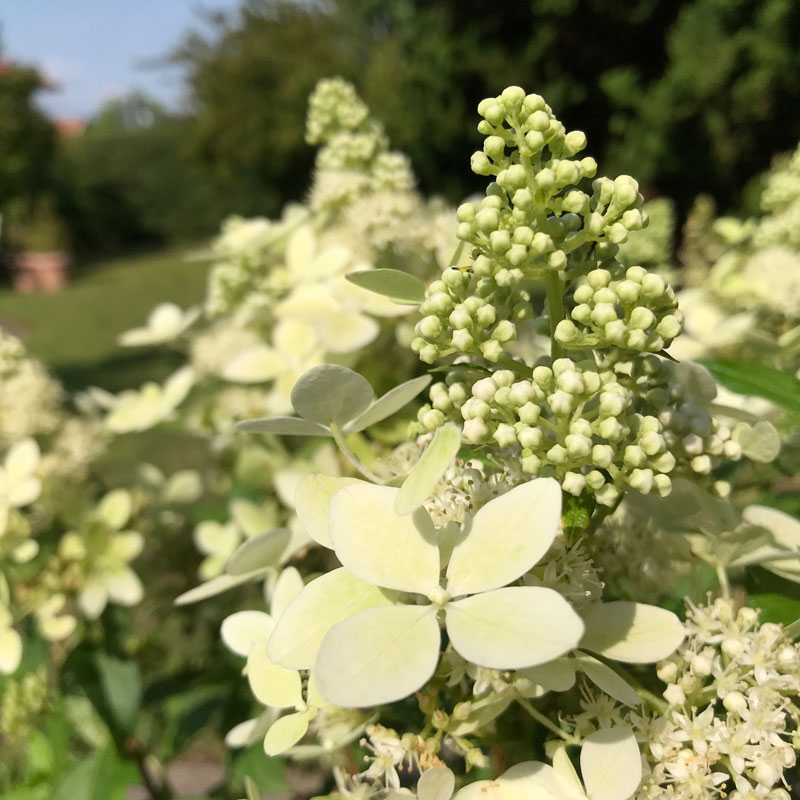 Sie zählen zu den schönsten Vertretern der beliebten Gattung und blüht nahezu ununterbrochen von Juli bis September mit weissen, zart duftenden Blüten. Sie gedeiht im normalen Gartenboden, kann aber auch als Kübelpflanze gehalten werden. Die Rispenhortensien gehören zu den äußerst pflegeleichten Hortensien, dadurch können auch unerfahrene Hobbygärtner ihren Ansprüchen gerecht werden. Sie lieben die Sonne und verzeihen auch mal einen trockenen Boden. Beliebt sind die Hortensien vor allem wegen ihrer Blütenpracht, die den Gärtner auch dann erfreuen, wenn alle anderen Pflanzen im Garten bereits verblüht sind und sich auf die Winterruhe vorbereiten.