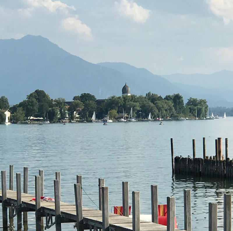 Der letzte Sommertag mit heissen Temperaturen, blauen Himmel und Sonneschein. Der Badestrand am Chiemsee war gut belegt und im Cafe hatten wir das Glück den letzten Tisch zu ergattern.