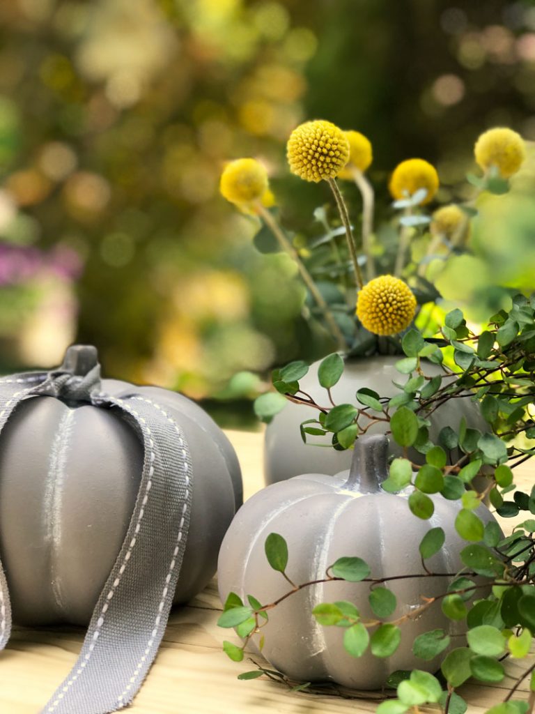 Schweren Herzens habe ich mich von der Sommerdeko verabschiedet und beim Aufräumen die beiden grauen Keramik Kürbis wiedergefunden, die ich mir vor Jahren im Gartencenter gekauft habe.