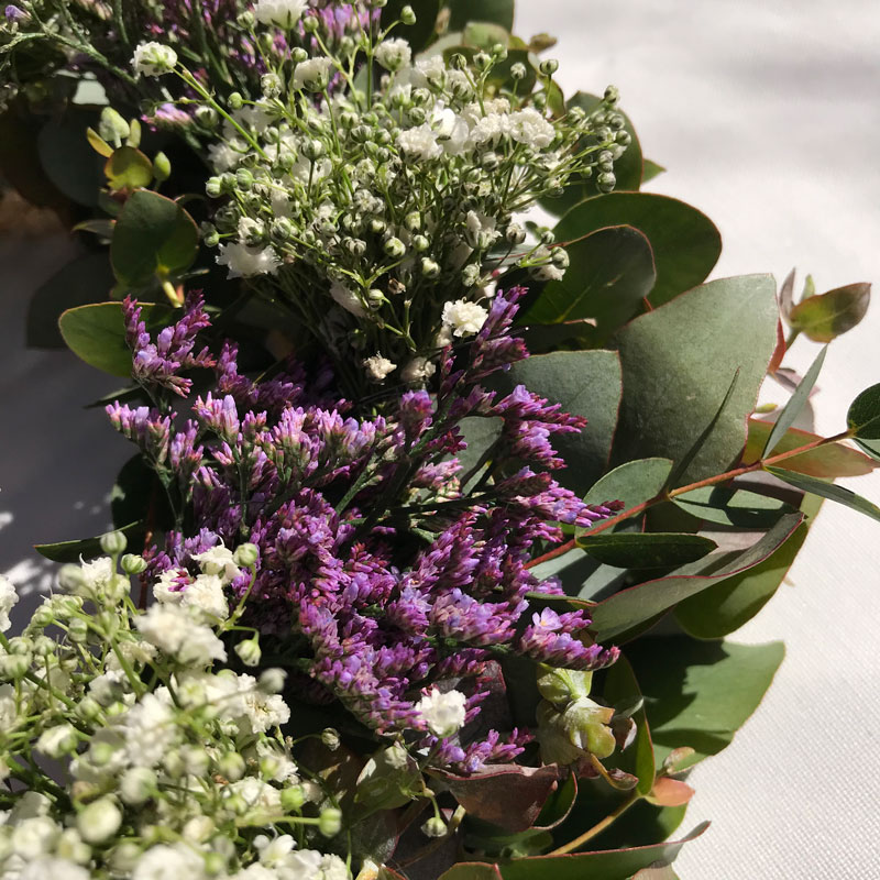 Ich liebe Blumen – das hat sicher der eine oder andere schon gemerkt. Sie duften himmlisch und Zuhause soll es einfach schön sein. Heute habe ich einen Kranz mit Eukalyptus gebunden und mit kleinen Sträusschen aus Schleierkraut und Strandflieder verziert.