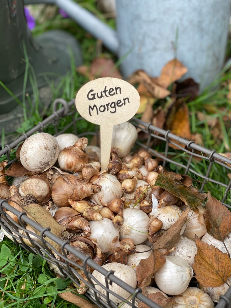 Besonders gespannt bin ich auf die weissen Tulpen Honeymoon mit den feinen, gefransten Blüten und der aparten Schönheit der Reifrock Narzisse, die auch durch ihren angenehmen Duft betören soll. Zudem freue ich mich auf die himmelblauen Krokusse und den vielen Trommelstöckchen. Auch wenn es viel Zeit, Kosten und Arbeit in Anspruch nimmt, freue mich schon jetzt auf den Frühling und hoffe dass alles blüht und gedeiht, so wie ich es mir vorstelle.