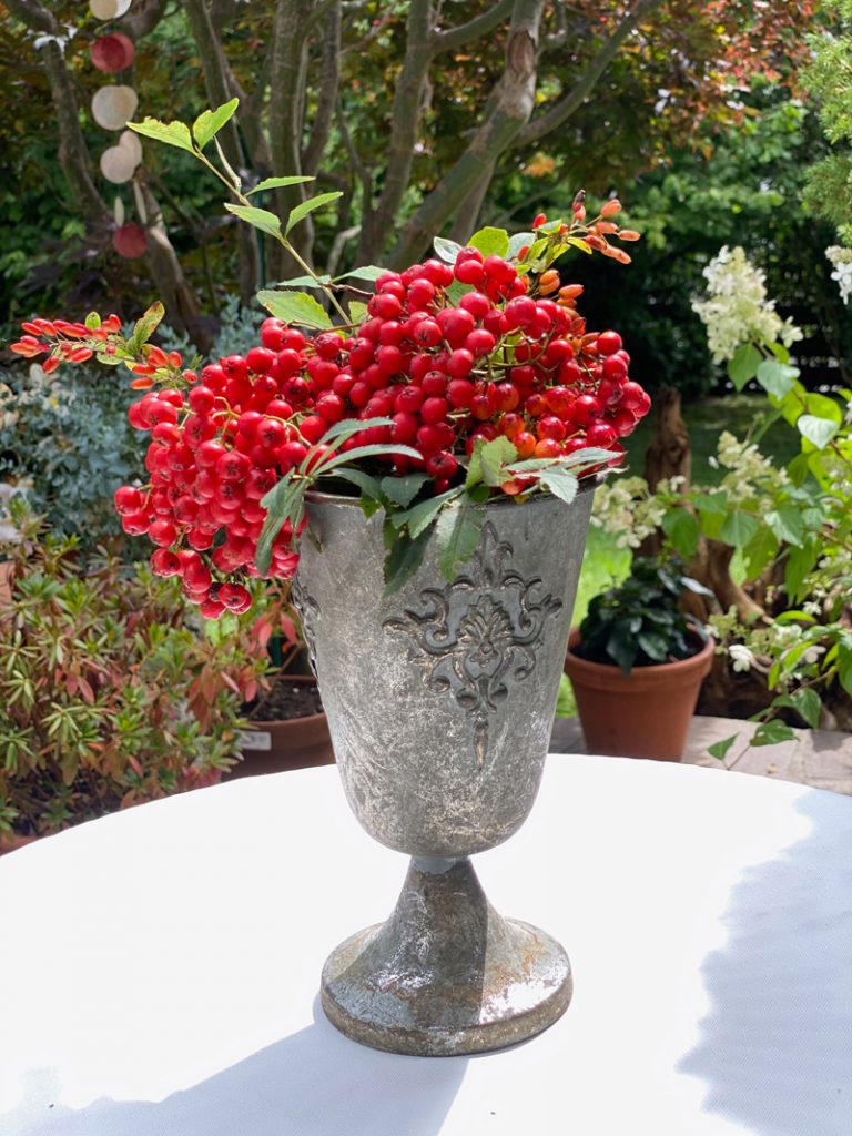 Was Deko betrifft, gibt es unterschiedliche Vorlieben, nicht jeder möchte viel Zeit aufwenden oder einen Strauss Schnittblumen kaufen. Ich finde farbenfrohe Beerenzweige simpel aber sehr wirkungsvoll, ob Hagebutten, Vogelbeeren, Feuerdorn oder Ilex – diese roten Knaller sehen alle toll aus.