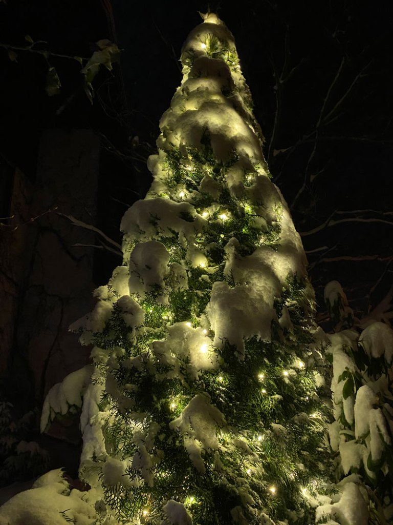 Besonders meine Lichterbäume auf der Terrasse und am Hauseingang – ein Überbleibsel aus der Adventszeit – sehen weiss überzuckert einfach romantisch aus. Die Weihnachtsdekoration musste Anfang Januar weichen, die Aussenbeleuchtung bleibt noch bis mindestens 02.02. – vielleicht auch noch länger. In unserem Dorf sind die Bäume und Sträucher immer noch hell beleuchtet, man könnte fast glauben Weihnachten steht vor der Türe.