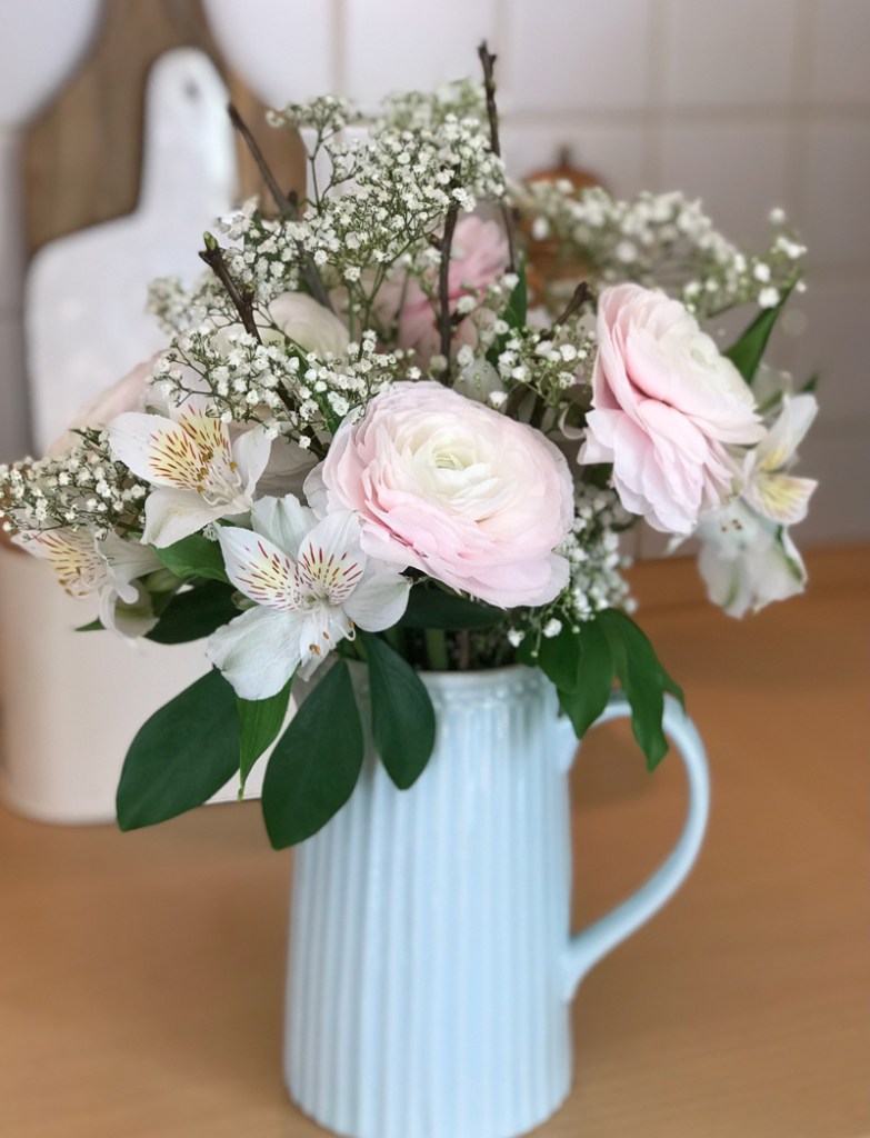 Da die Ranunkel aber sehr durstig ist, kontrolliere ich täglich den Wasserstand. Die Blüten bleiben lange schön, wenn sie nicht zu warm, direkt in Heizungsnähe und nicht im Durchzug stehen.