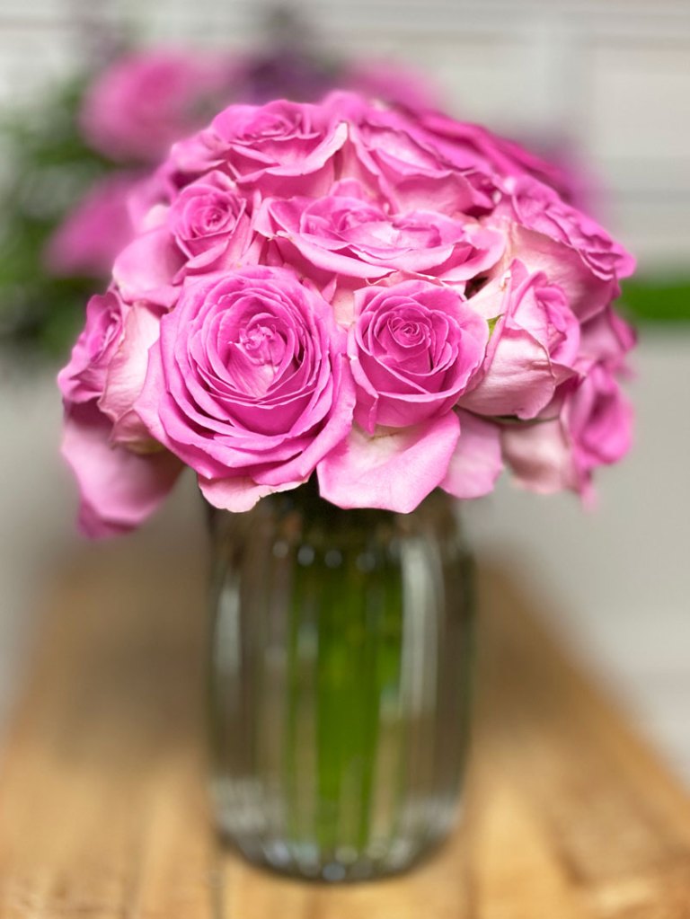 So kam ich in den Genuss eines grossen Rosenstrauss und einen gebundenen Strauss mit Rosen, Nelken, Strandflieder und Chrysanthemen. Leider war nach 4 Tagen die Pracht vorbei.