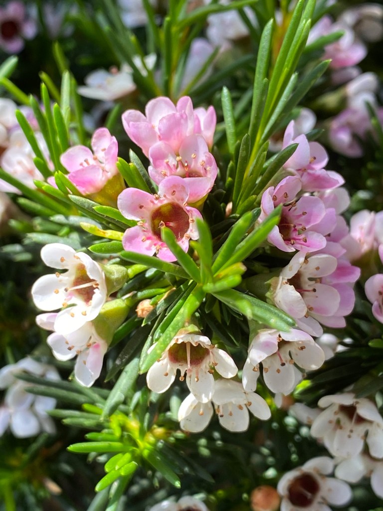 In Australien wächst die Waxflower in der freien Natur – bei uns muss sie sich mit dem Kübel begnügen, denn die Pflanze reagiert sehr empfindlich auf Frost und eignet sich bei unseren Temperaturen nicht im Beet. In ihrer ursprünglichen Heimat Australien wächst die Pflanze in Heidelandschaften und kann eine Höhe von zwei bis vier Meter erreichen. Angepasst an die klimatischen Gegebenheiten kann die Waxflower problemlos Hitze- und Trockenperioden überstehen – ideale Voraussetzungen für einen heissen Sommer bei uns. Die vielen kleinen Blüten wirken als seien sie aus Wachs und daher auch der Name der hübschen Pflanze.