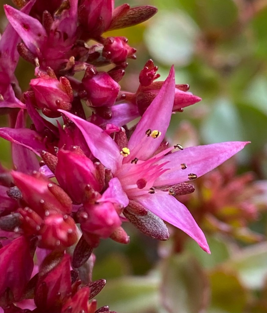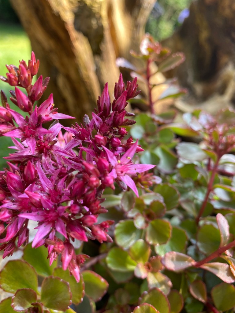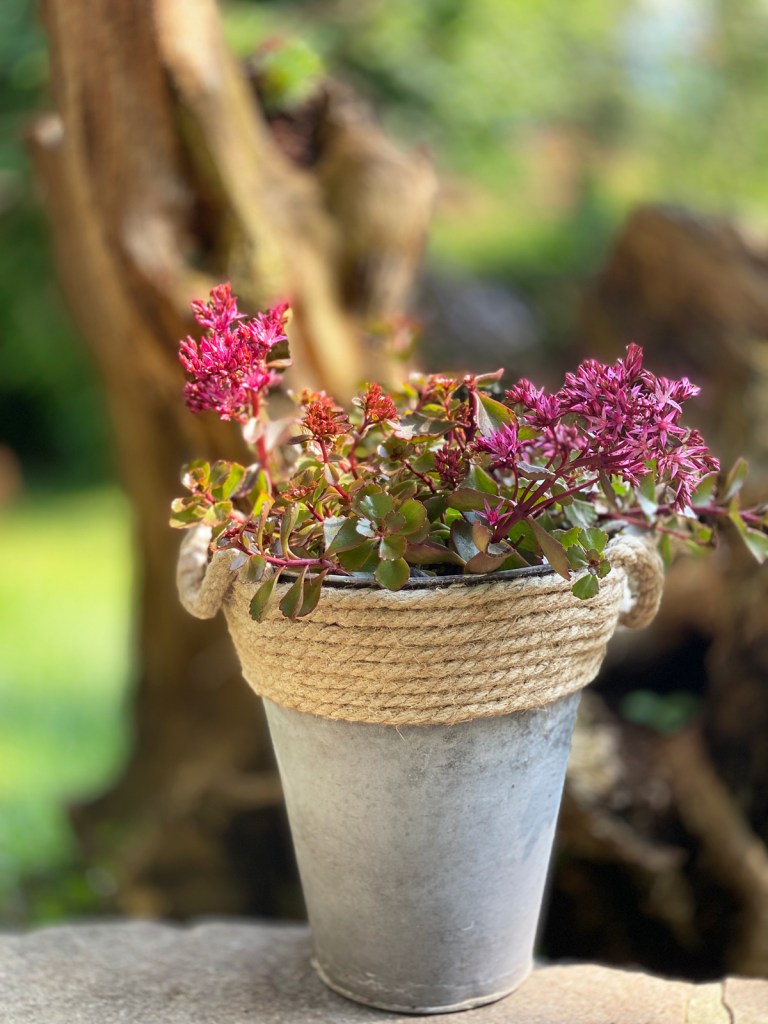 Sedum sind pflegeleichte, aussergewöhnliche Pflanzen und da konnte ich nicht widerstehen. Der warme Farbton erinnert an Herbst, wirkt aber in der Sommersonne besonders schön. Alle Arten des Sedum sind ausgesprochen genügsam. Sie lieben die Sonne, tolerieren auch ein halbschattiges Plätzchen. Sie sind wahre Überlebenskünstler, gedeihen im Topf und im Beet, müssen kaum gegossen werden, sind langlebig und winterhart, jedoch wertvoll für Insekten und Schmetterlinge.