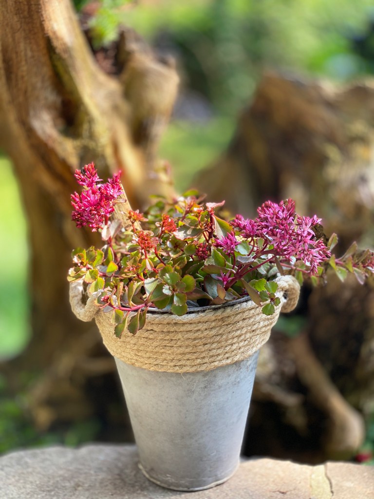 Sedum sind pflegeleichte, aussergewöhnliche Pflanzen und da konnte ich nicht widerstehen. Der warme Farbton erinnert an Herbst, wirkt aber in der Sommersonne besonders schön. Alle Arten des Sedum sind ausgesprochen genügsam. Sie lieben die Sonne, tolerieren auch ein halbschattiges Plätzchen. Sie sind wahre Überlebenskünstler, gedeihen im Topf und im Beet, müssen kaum gegossen werden, sind langlebig und winterhart, jedoch wertvoll für Insekten und Schmetterlinge.