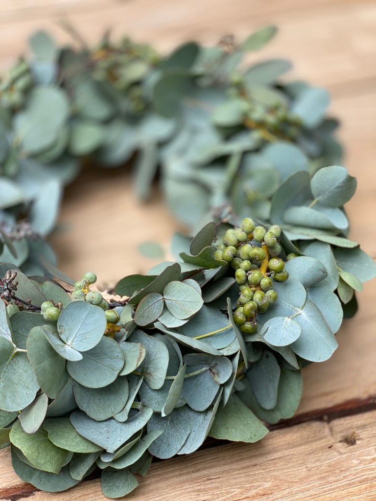 Einen Kranz zu binden hat für mich etwas beruhigendes und am Ende freut sich das Auge über das Ergebnis. Mein liebstes Material dafür sind die Zweige vom Eukalyptus – es sieht nicht nur schön aus, sondern duftet ganz herrlich, hält lange und sieht auch getrocknet hübsch aus.