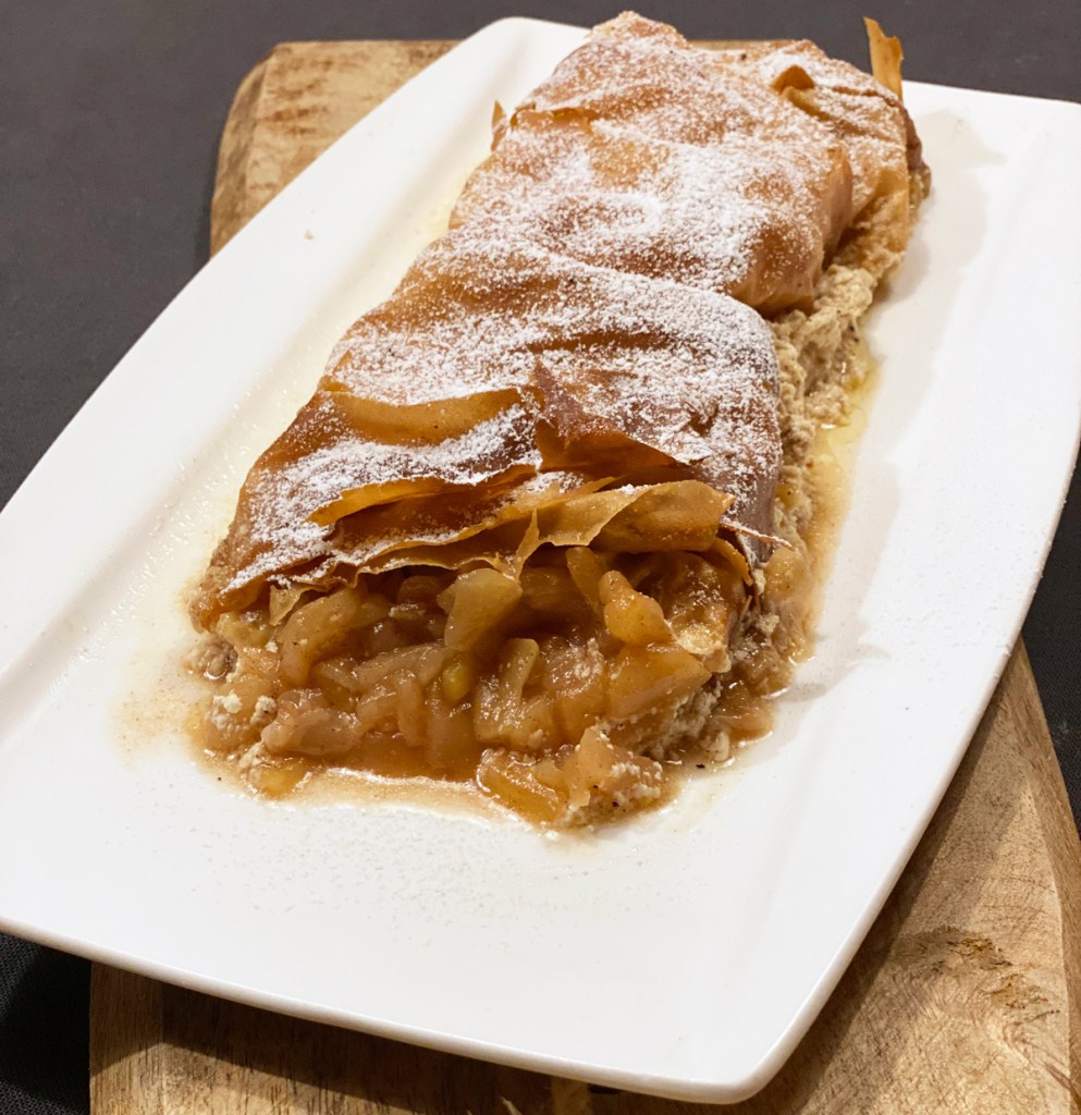 Ich denke wir haben jetzt das perfekte Wetter für einen Apfelstrudel. Die letzten Tage war es ziemlich kalt und ein Apfelstrudel mit viel Zimt passt auch zur Adventszeit. Wenn man im Restaurant Apfelstrudel bestellt bekommt man meist die trockene Variante, die mit Vanille Eis oder Schlagsahne serviert wird.