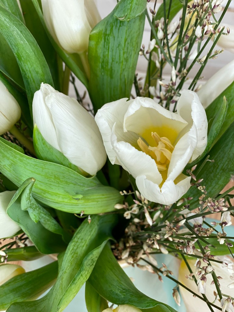 Ein wenig Eigenwillig ist die Tulpe, denn sie wächst in der Vase weiter und man kann mit der Wahl der Vase sogar die Wuchsform verändern. In hohen Vasen bleiben die Stiele gerade, während die Tulpen in kurzen Vasen sich in unterschiedliche Richtungen windet. Tulpen sind zeitlos, elegant und unkompliziert, in vielen Farben und Formen erhältlich. Jetzt verschönern Tulpen noch die Wohnung, doch ich freue mich wenn ab Ende März/Anfang April die ersten Tulpen im Garten wachsen.