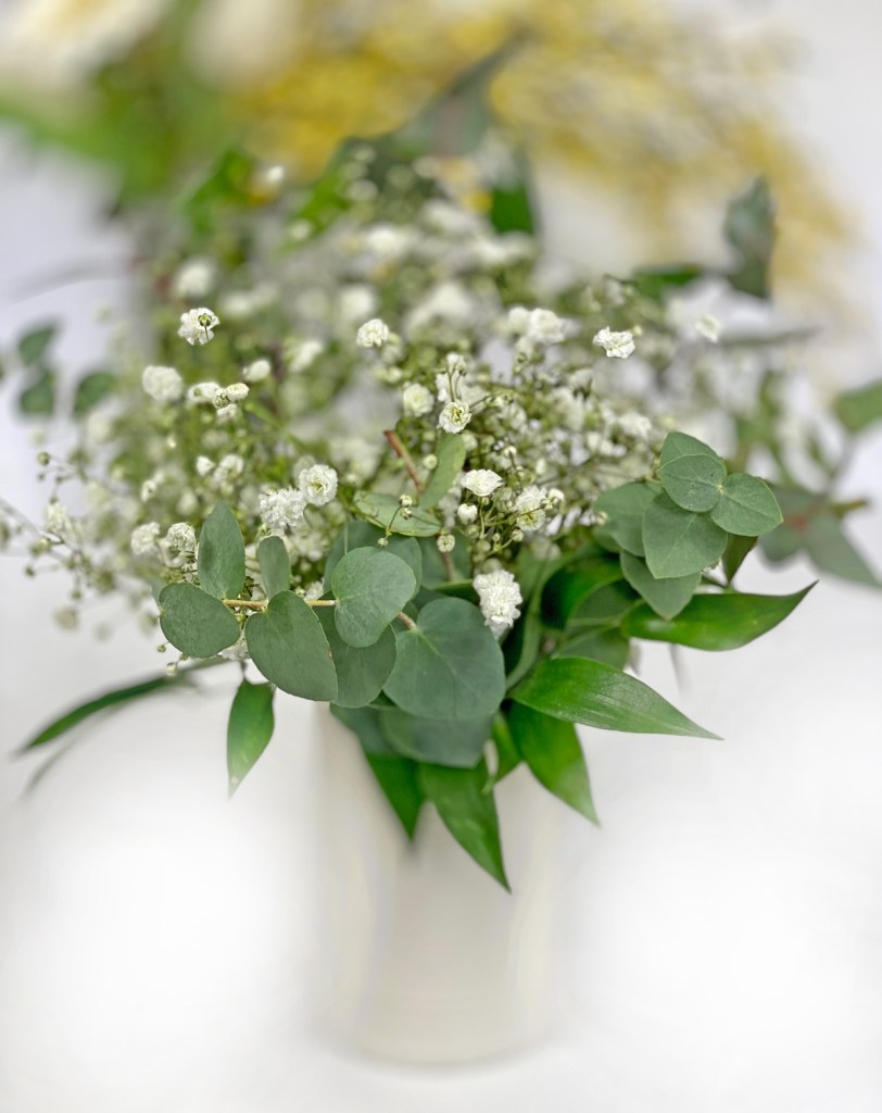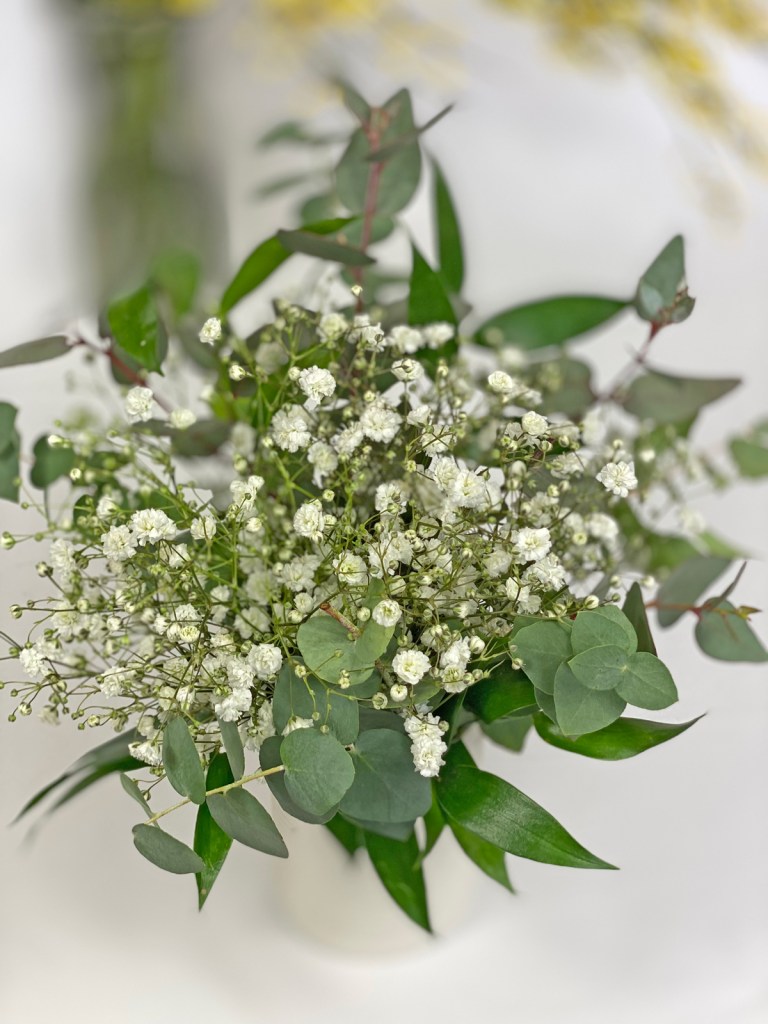 Trotz ihres ungleichmässigen Wuchs dekoriere ich sehr gerne mit Schleierkraut. Ihre weissen Blüten harmonieren als Beiwerk, besonders zu Rosen, sind aber als Monostrauss genau so schön. Viele verwenden Schleierkraut nur als Füllmaterial für Blumensträusse. Dabei sieht die Blume mit ein wenig Grün einfach bezaubernd aus.