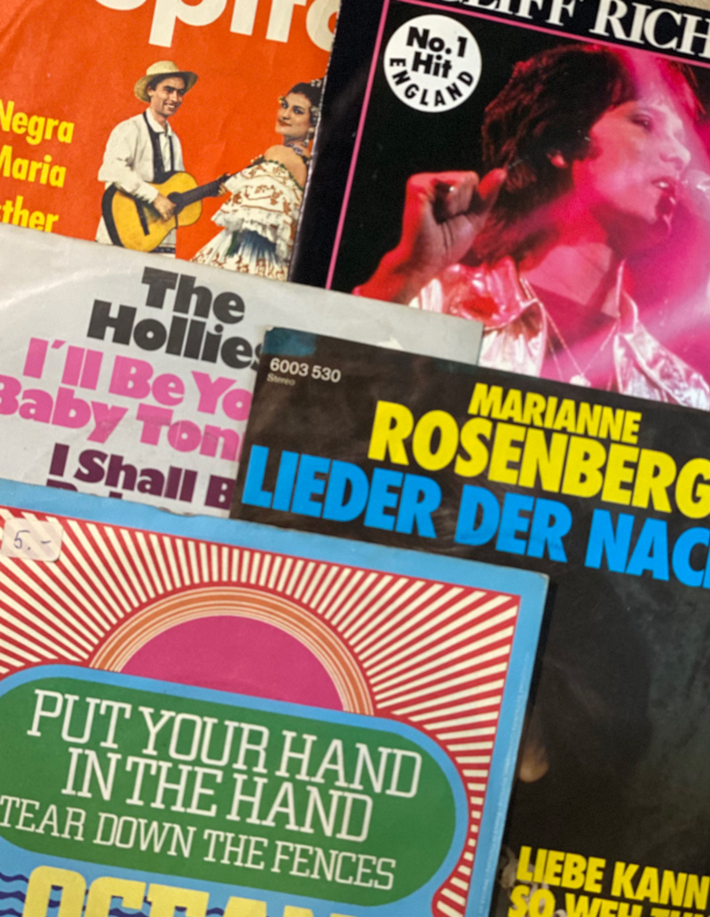 Schallplatten konnte man damals bei Fernseh Rückert kaufen, ein Elektroladen in unserer Gemeinde, der in erster Linie Waschmaschinen, Haushaltsgeräte, Fernseher und Radiogeräte verkaufte. Für Schallplatten gab es nur eine kleine Nische mit einer Miniauswahl und hatte man Sonderwünsche, wurden die Singles bestellt, was dann schon einmal lange 14 Tage lang dauerte. Als Kind legten mir meine Eltern manchmal Schallplatten mit Märchen auf, immer dann, wenn Oma keine Zeit hatte mir vorzulesen. Das war für mich immer etwas Besonderes, wenn die schwarze Scheibe ganz vorsichtig aus der Hülle genommen und auf den Plattenspieler gelegt wurde. Dann wurde der Tonarm vorsichtig aufgesetzt und es knisterte aus dem Lautsprecher.