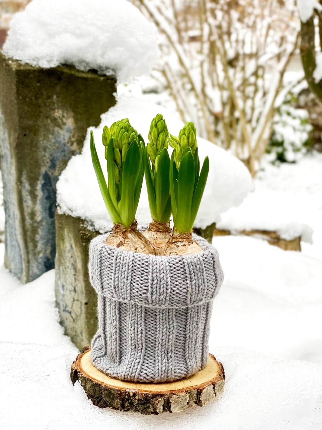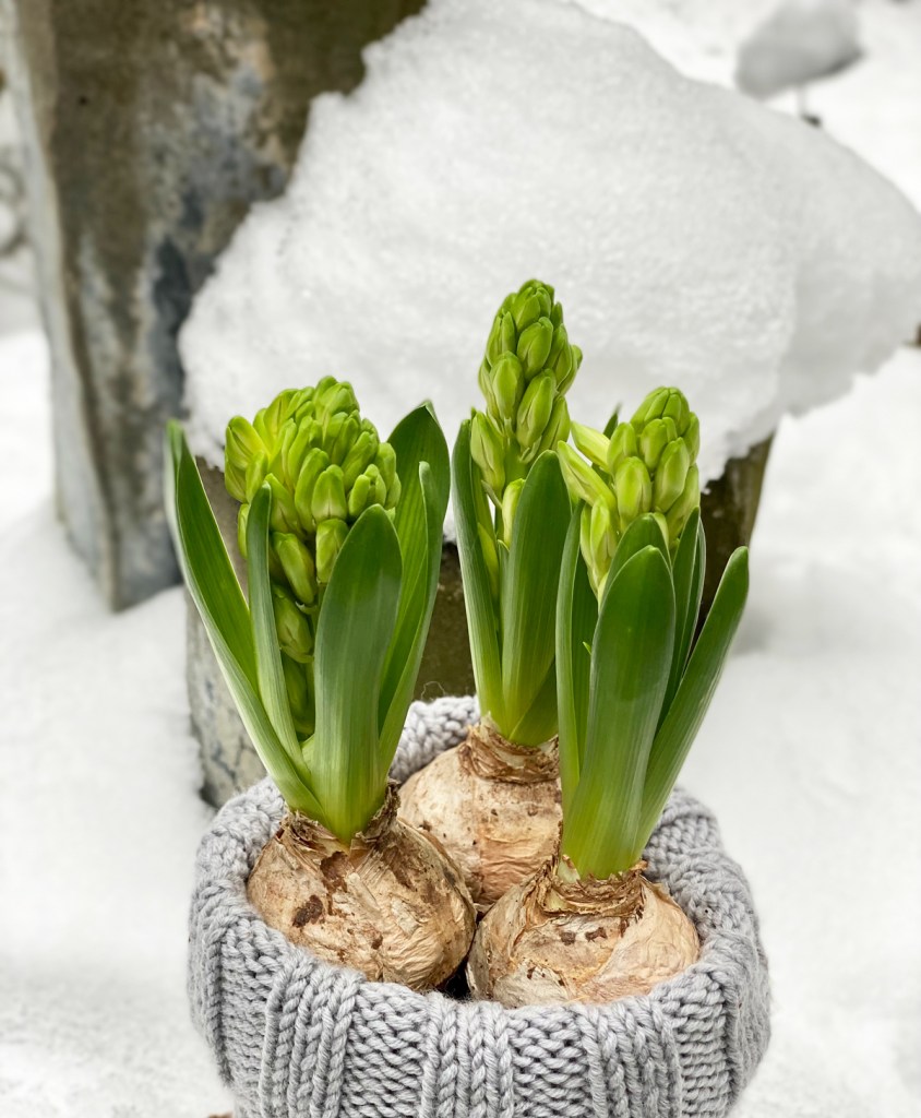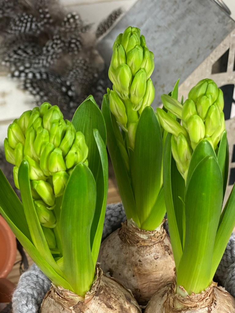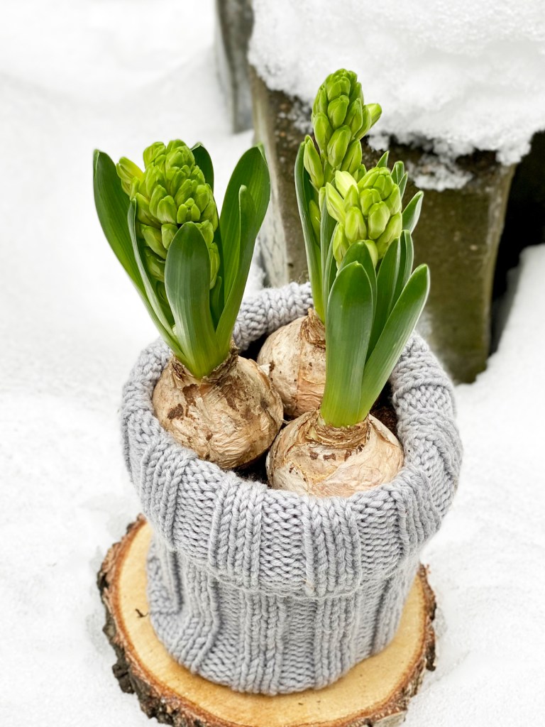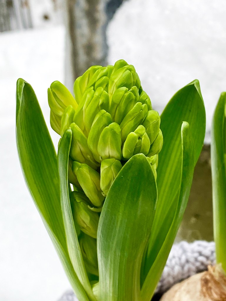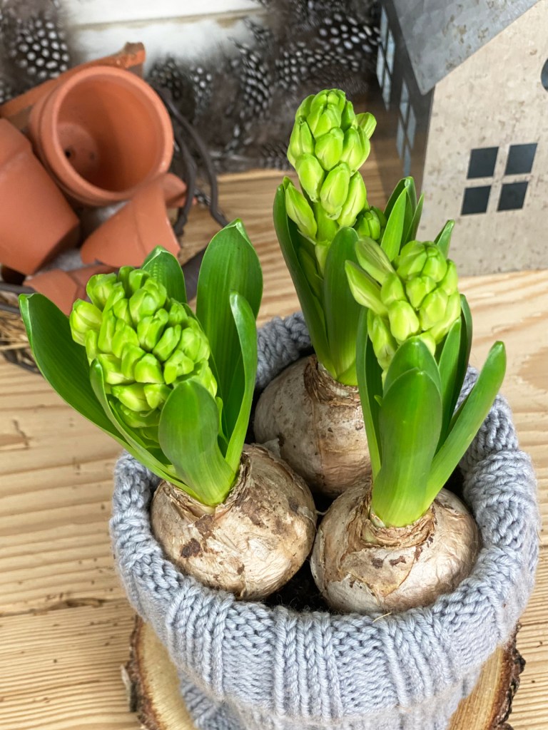 Ob als Tischdekoration oder am Fensterbrett, die Hyazinthe ist ein echter Hingucker. Auch wenn sie noch nicht blüht, allein das Grün ist eine Augenweide, denn der Winter hat seit Tagen außer Grau, Schnee und Kälte nichts zu bieten – so werden wir bestimmt keine Freunde.
