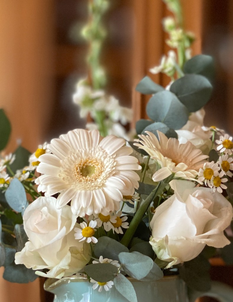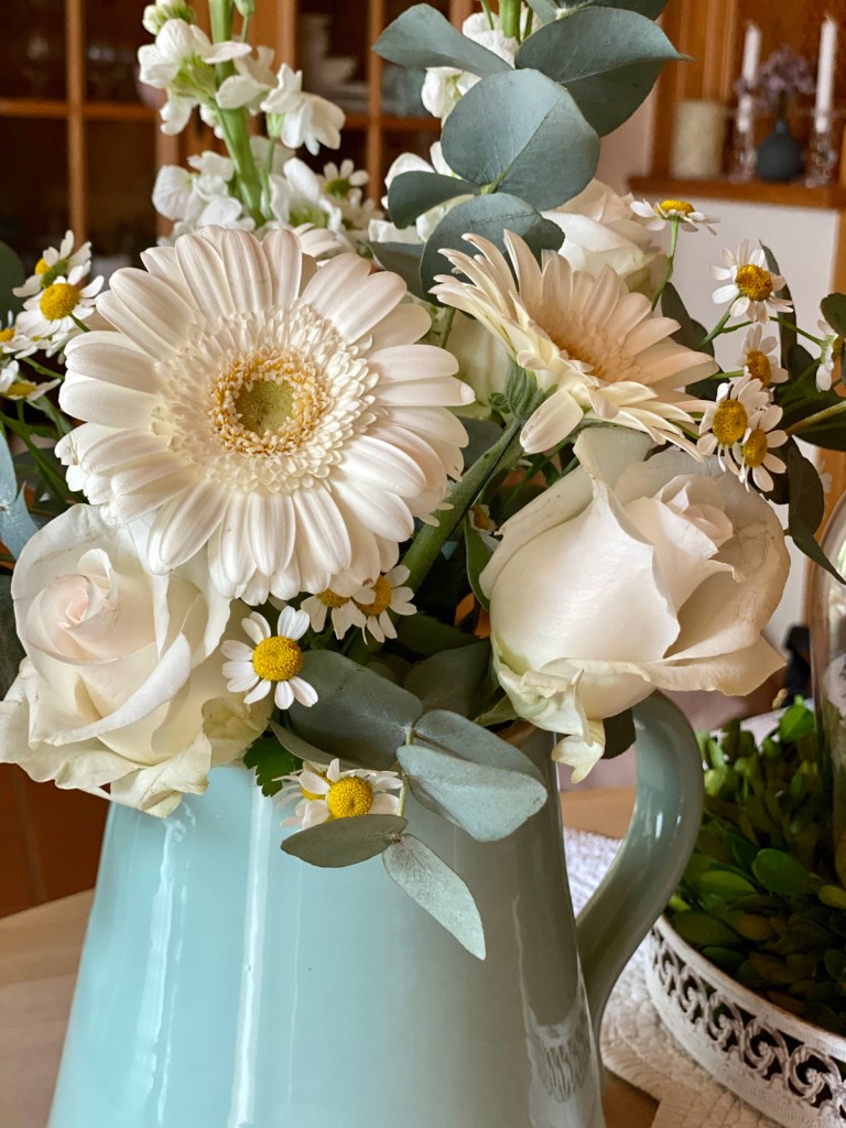 Ich habe mich sehr über den Strauss aus Rosen, Levkojen, Kamilleblumen, Gerbera und Eukalyptus gefreut – genau nach meinem Geschmack. Da meine Floristin meine Lieblingsfarben kennt, war es für meine Tochter ganz klar, ihr zu vertrauen und dort den Strauss für mich zu bestellen. Auch für mein Wellness-Programm war alles vorbereitet, sodass ich den Tag genießen konnte.