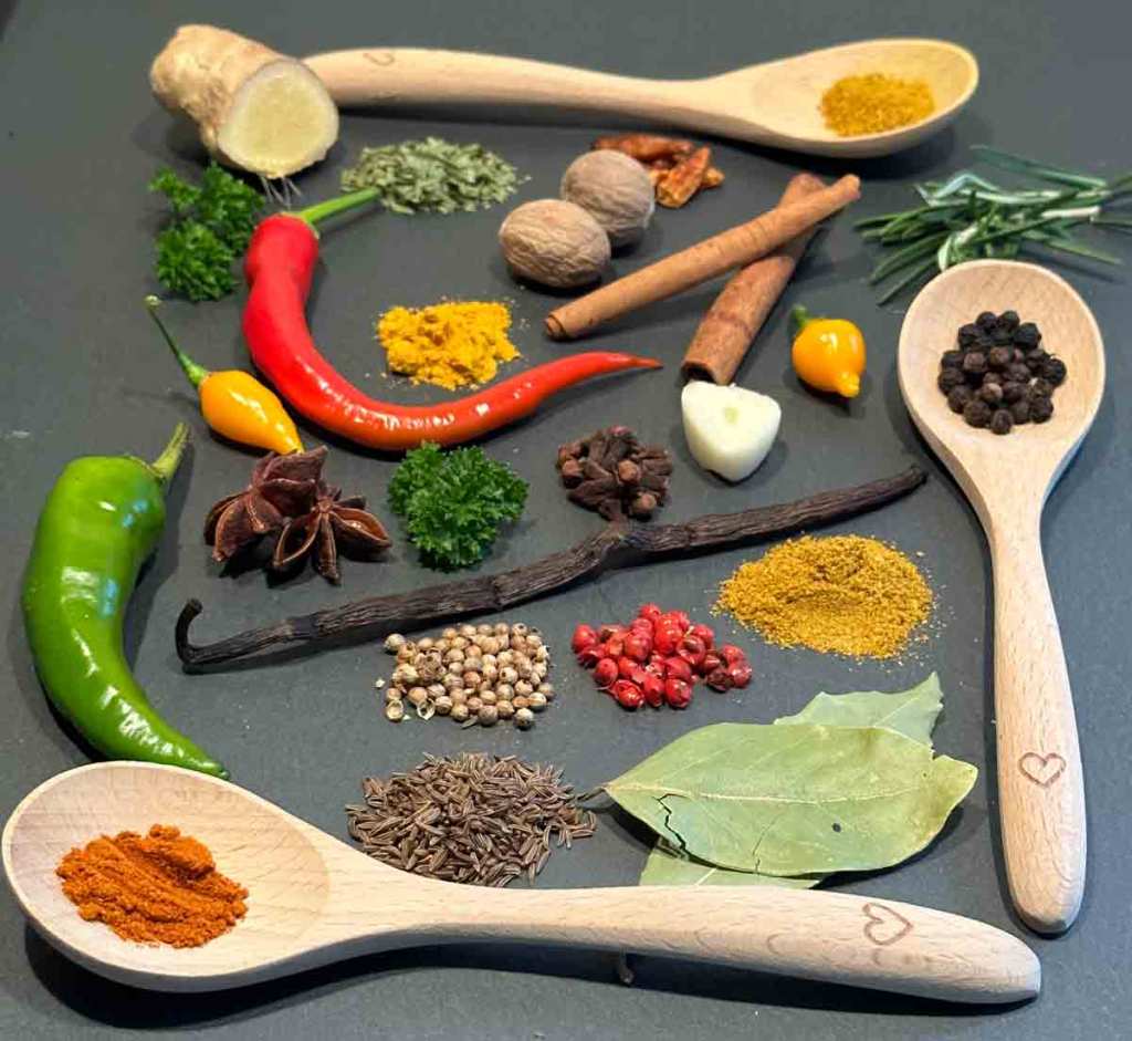 Na klar, Pfeffer und Salz müssen sein – und die beiden hat jeder in seiner Küche. Doch welche Gewürze solltest du noch im Hause haben, damit jedes Essen ein kleines Festmahl wird. Salz war im Mittelalter so wertvoll wie Gold und es wurde nicht nur zum Würzen, sondern auch zur Konservierung verwendet. Im privaten Haushalt wird eine sparsame Verwendung von jodiertem Speisesalz empfohlen, da übermässiger Salzkonsum zur Entwicklung von Bluthochdruck beitragen kann. Daneben gibt es die sogenannten Gourmet Salze, für die jedoch ein stolzer Preis verlangt wird. Pfeffer gibt es, neben besonderen Sorten, als schwarzer oder weisser Pfeffer. Der weisse Pfeffer ist etwas milder in seiner Schärfe, jedoch ein Hauch schwarzer Pfeffer, direkt auf das Gericht, gibt vielen Speisen den besonderen Pfiff.