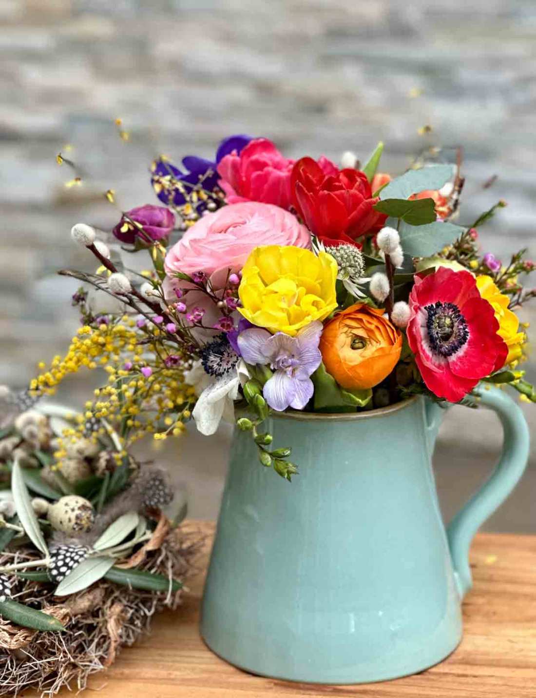Nach den kalten Wintertagen freuen wir uns über jeden Sonnenstrahl, auf längere Tage und vor allem auf eine bunte Blütenpracht. Wir bewegen uns zwar schon auf das Ende des Februars zu, bevor im März langsam der Frühling beginnt. Der Monat hat uns mit viel Sonne und angenehme Temperaturen verwöhnt – ungewöhnlich, den eigentlich herrscht im Februar im Süden tiefer Winter. Die letzten Tage hatten wir viel Regen, viel Grau und nachts Minustemperaturen, ein guter Grund um mit einem bunten Blumenstrauß die Frühlingsstimmung ins Haus zu holen. Beim Anblick von diesem Gute-Laune Strauss wird einem gleich warm ums Herz – versprochen!