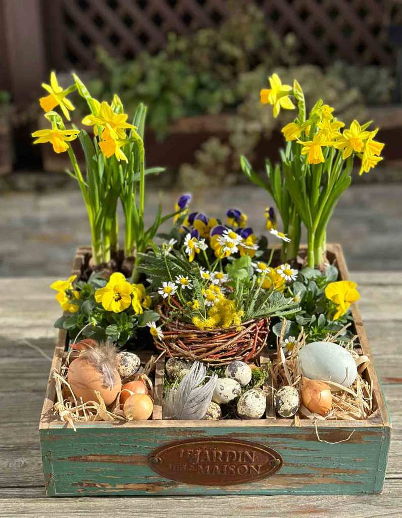 Als erste Frühlingsboten bringen Narzissen und Hornveilchen wieder Leben in die Natur. Doch auch im Haus können sie für hübsche Farbkleckse sorgen. Im Topf vorgezogen blühen sie dann in der warmen Stube etwa zwei Wochen – zumindest länger als Schnittblumen. An sonnigen und wärmeren Tagen stelle ich den Setzkasten auf meine Terrasse und hole ihn am späten Nachmittag wieder ins Haus.