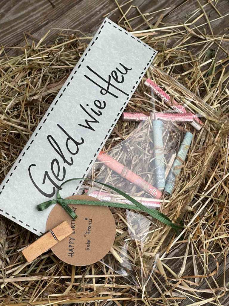 Das Geld jetzt einfach in ein Kuvert stecken ist einfach und fantasielos, doch das bin ich nicht, ein wenig Spaß darf das Geschenk schon machen. Ich habe einen Gefrierbeutel mit Zipp-Verschluss