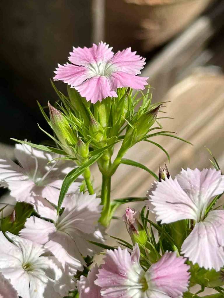 So richtig anfreunden konnte ich mich mit Nelken bisher nicht, gelten sie doch meist ein wenig altbacken. Im Garten hatte ich mit Nelken auch nie Glück, die große Gefahr sind Schnecken – für sie ein Leckerbissen. Doch man sollte auch mal über den Rand sehen – in einem Gartenjournal habe ich Bilder entdeckt, wo Duftnelken in einem Kübel mit Rosmarin, Basilikum, Minze und Thymian bepflanzt wurde. Zum einen schrecken die Kräuter die Nacktschnecken ab, es muss herrlich duften und zum anderen sieht es wirklich hübsch aus.