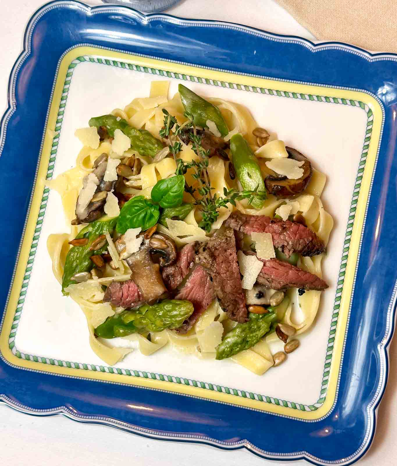 Es geht doch nichts über ein leckeres Pasta-Gericht – vor allem in der Spargelzeit. Dazu Champignon, die mit grünem Spargel hervorragend harmonieren, eine leichte Sauce und kurz gebratene Rinderhüftsteaks. Eigentlich bin ich ein großer Fan, das Essen im Voraus zu planen. Das heißt, am Donnerstagabend wird ein Speiseplan für das Wochenende und die kommende Woche erstellt. So plane ich den Einkauf am Freitag, was viel Zeit spart und ich kann mich auf verschiedene Gerichte freuen.