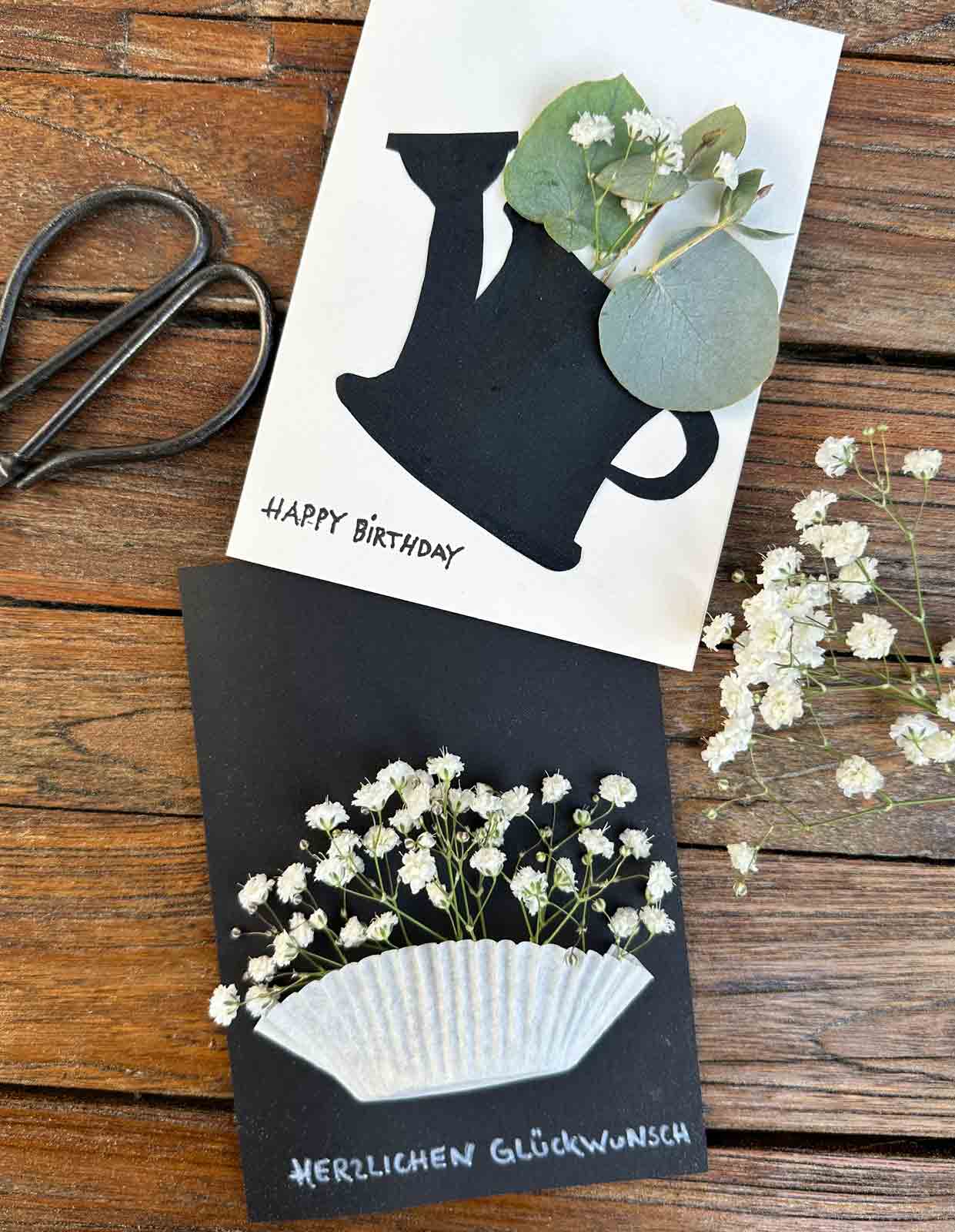 Geburtstagskarten mit Schleierkraut basteln