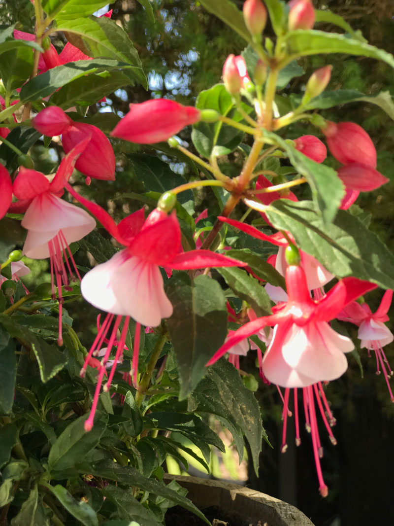 Sommerblumen mit hängenden Blütenkronen, die Fuchsien