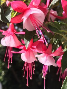 Sommerblumen mit hängenden Blütenkronen, die Fuchsien