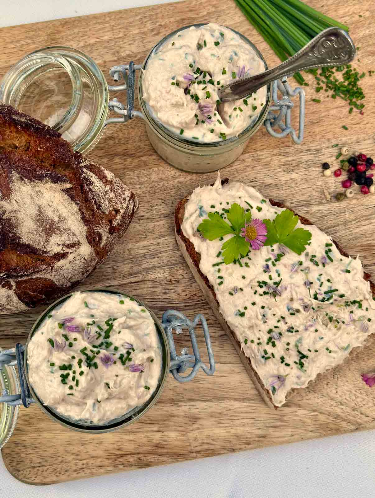 Thunfischaufstrich ist sehr wandelbar und wer es pikant mag, gibt gerne scharfes Paprikapulver oder Chili hinzu. Mit Avocado bringt man Abwechslung in das Gericht oder du gibst klein geschnittene Paprika, Essiggurken oder Oliven dazu, doch was nie fehlen darf sind frische Kräuter.