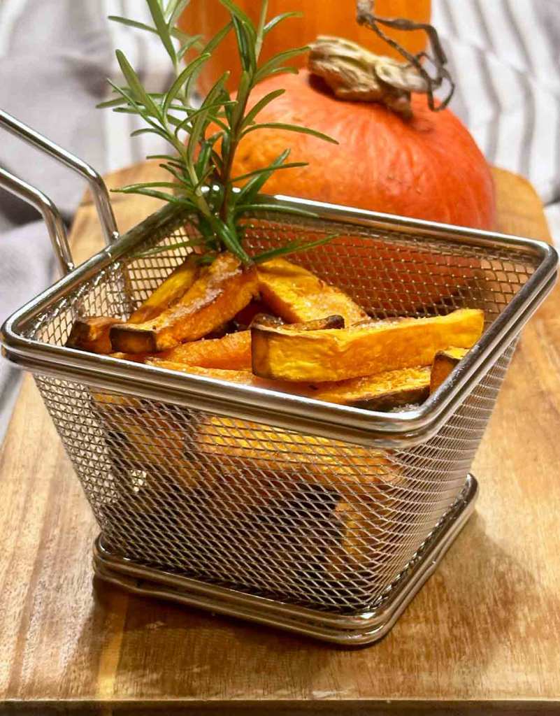 Ein großer Fan vom Pommes war ich noch nie, noch nicht mal als Kind. Überhaupt alles was frittiert ist, mag ich nicht und eine Fritteuse ist in meinem Haushalt nicht vorhanden. Letzte Woche hab ich bei Pinterest nach Kürbis Rezepten gesucht und bin über Kürbis Pommes gestolpert. Kürbis schmeckt mir in so ziemlich allen Variationen, vor allem in Suppenform. Oder gebacken, mit Feta, als Nudelgericht oder gefüllt mit Hackfleisch. Nun habe ich Kürbis Pommes aus dem Backofen ausprobiert und meine Tochter war begeistert. Die Kürbis-Saison dauert noch eine Weile und ich denke, Kürbis Pommes werden bald wieder auf dem Speiseplan stehen.