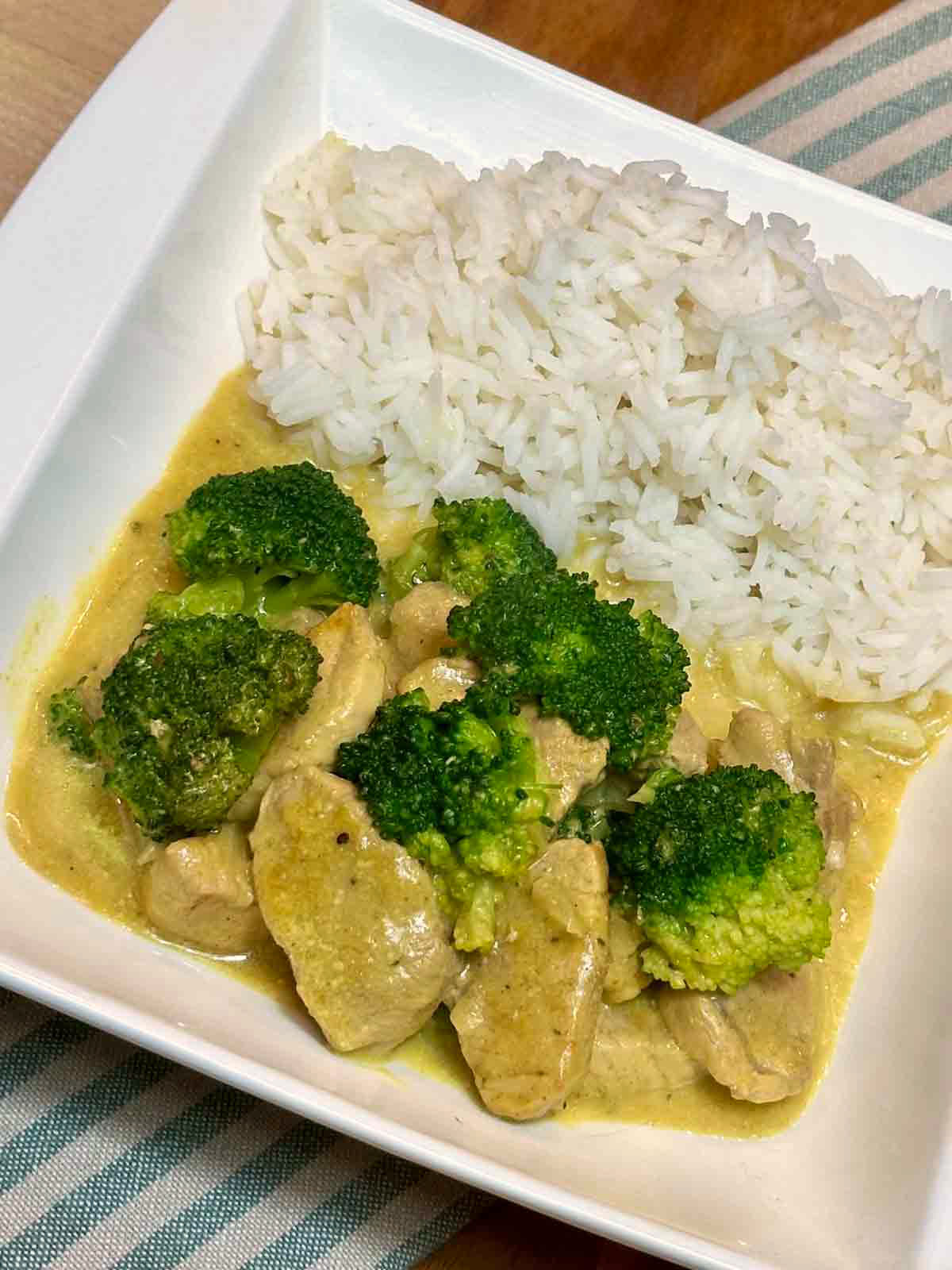 Die einfachen Gerichte sind oft die besten und mein Curry–Sahne-Geschnetzeltes gehört definitiv dazu. Ein weiterer Grund, warum dieses Gericht ganz häufig auf den Tisch kommt, ist das die Zubereitung kinderleicht und ruck-zuck fertig ist. Zartes Schweinefilet ist an sich ein Gedicht und wenn dann noch die cremige Currysauce dazukommt, gibt es kein Halten mehr. Anstatt Schweinefilet kann natürlich auch Pute- oder Hähnchenfleisch verwendet werden. Brokkoli hatte ich noch im Tiefkühler, doch auch andere Gemüsesorten oder Ananas schmecken sehr lecker. Kochrezepte müssen nicht aufwendig sein, denn leckere Gerichte lassen auch mit wenigen Zutaten zaubern.