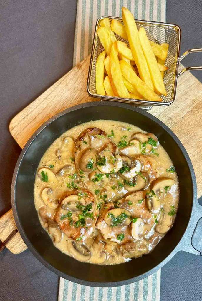 Ich mag die deftige Küche, besonders dann, wenn die Gerichte simpel sind – doch aber fein schmecken. Die Kombination dieser Zutaten passen wirklich perfekt zusammen und das Ergebnis ist eine geschmacklich harmonische Pfanne, die in meiner Familie jeder mag. Das Gericht ist nicht zu scharf, ohne Alkohol und kann bedenkenlos der ganzen Familie, auch mit Kindern serviert werden. Ich verwende für dieses Gericht Schweinefilet, doch auch Rind oder Geflügel kann verwendet werden. Beim nächsten Mal möchte ich das Ganze einmal mit Wild ausprobieren, was nicht nur zum Namen passt. Zur Jägerpfanne reiche ich Pommes, aber auch Kroketten, Reis, Salzkartoffel oder Spätzle schmecken dazu. Ob ihr braune oder weiße Champignons verwendet ist völlig egal, die braunen sind nur optisch ansprechender.