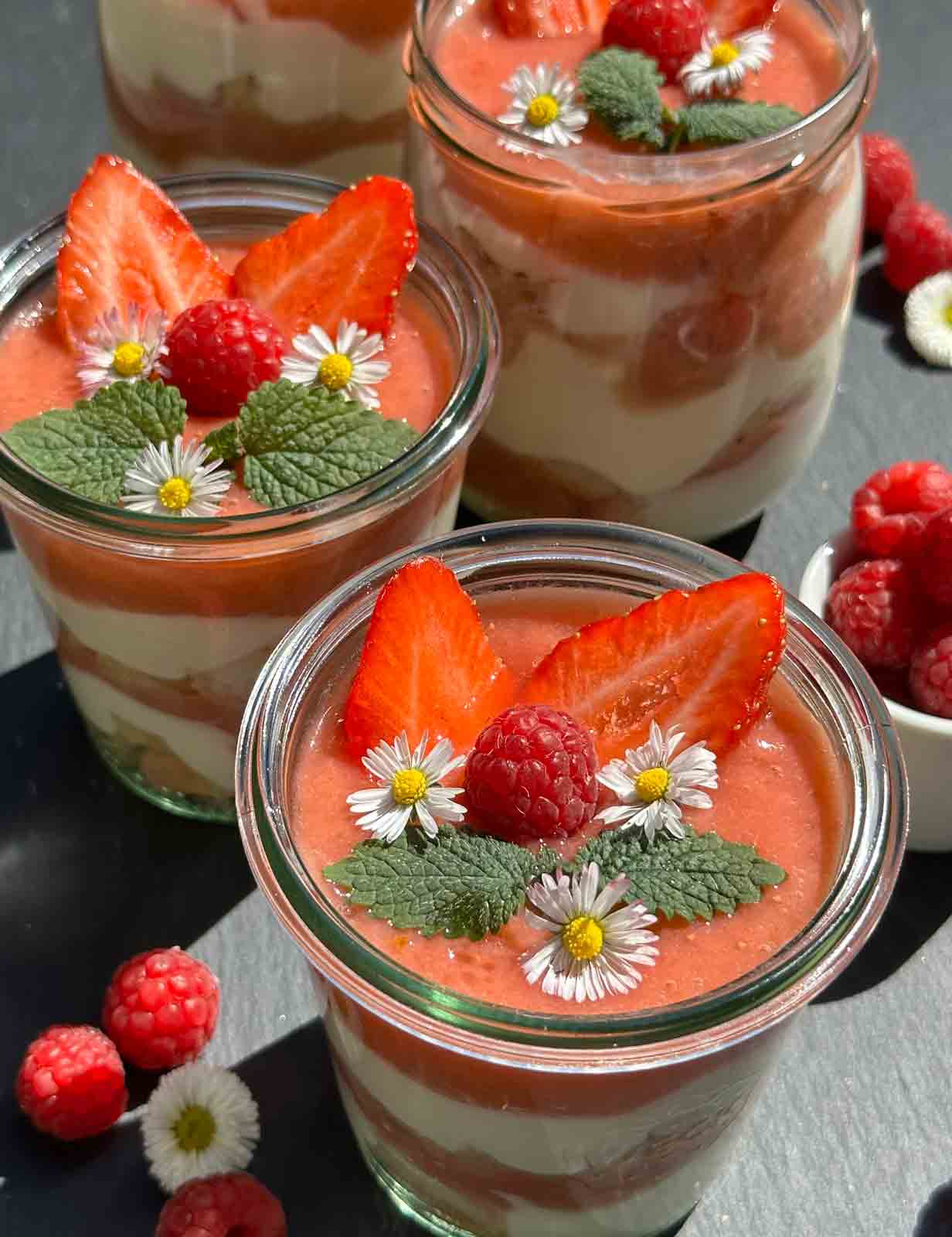 Rhabarber-Erdbeer-Himbeer Tiramisu