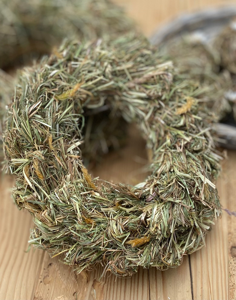 Mit duftendem Heu einen Kranz binden