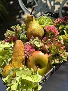 Tischdeko mit Hortensien und Fette Henne